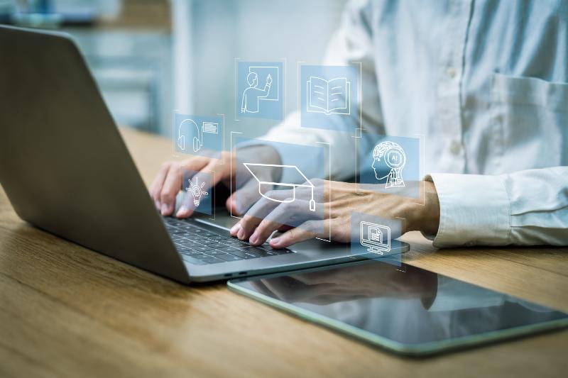 オンライン講座や外部資格制度を活用する方法は、自学自習型で導入しやすく、コストも比較的低いのが特徴です。受講履歴やテスト結果などから習熟度の可視化もしやすく、継続的な学習支援にも適しています。