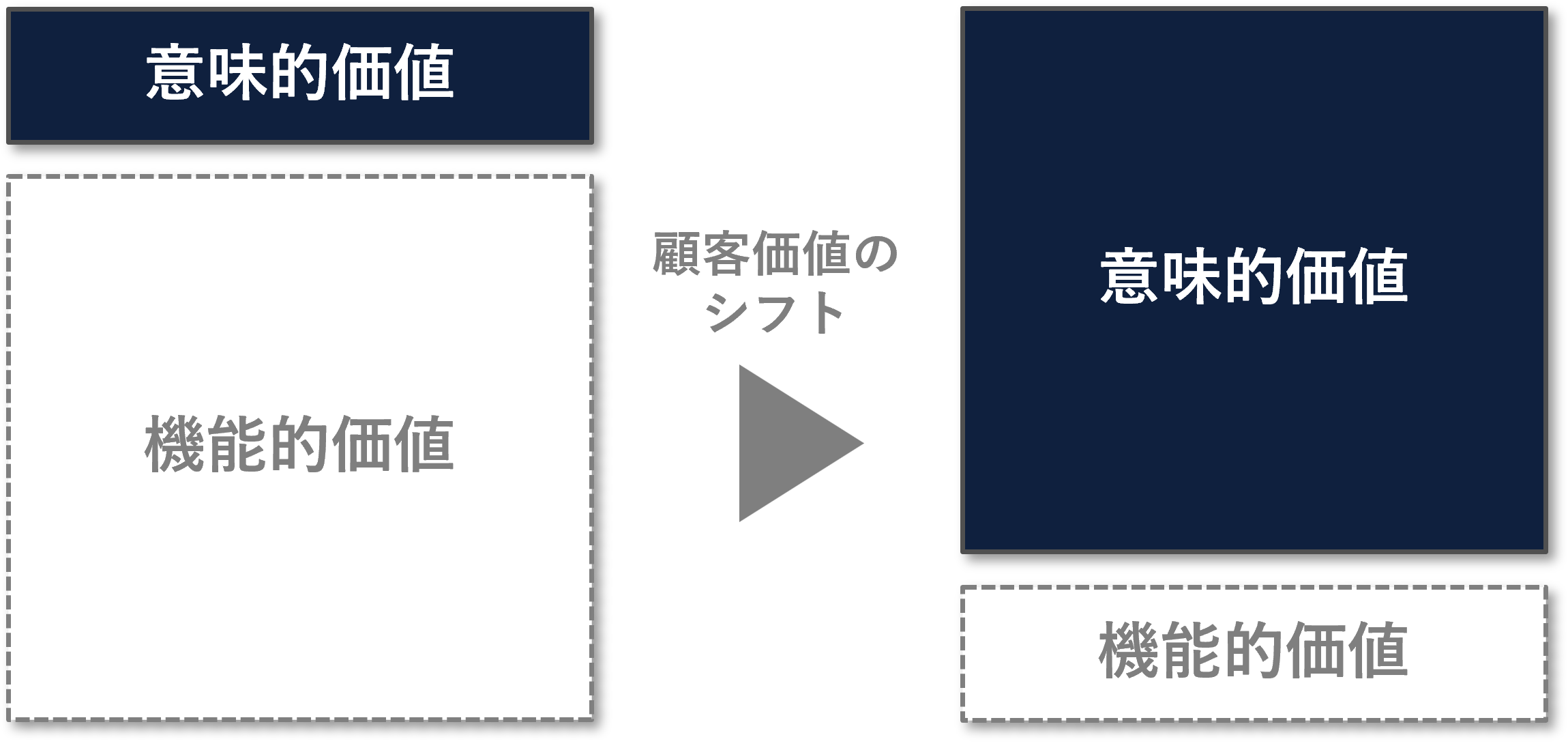 しかし、「もの」があふれているこの時代においてユーザー(顧客)のニーズが機能的価値だけでは満足せず、意味的価値も求めるようになった。